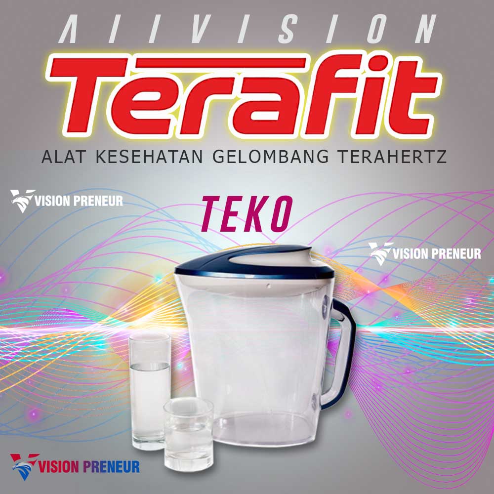 Prinsip Kerja : air minum yang disimpan atau dilewatkan pada medan THz strukturnya jadi lebih “teratur” (structured water).
